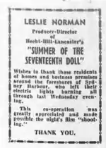 14. 1 2 "Filming of 'The Doll' Begins". The Sydney Morning Herald. 30 December 1958. p. 4.