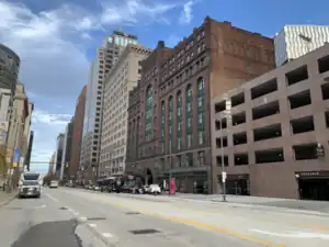 Superior Avenue connects the east and west sides of the most populated downtown in Ohio. To the west, Superior Avenue connects to the Detroit Avenue extension which starts at the terminus of Superior, the Detroit-Superior Bridge that crosses over the Cuyahoga River into Ohio City. Detroit then runs through the entire west side of Cleveland, through the inner ring suburbs of Lakewood, Rocky River, the outer ring suburb of Westlake and on into the exurbs of Lorain County.