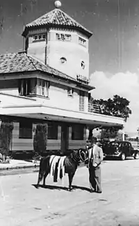 During the 1920s, The Australian hotelier Jim Cavill (born James Freeman Cavill[1]) purchased 10 acres of land in Elston (now Surfers Paradise). The land has previously been developed by previous owners but 1925 marked the openings of the Jubilee Bridge and the South Coast Road, opening up the area to a new flow of driving tourists. That year (or in 1928[2]), Jim Cavill opened the Surfers Paradise Hotel, a 16-bedroom hotel located on the intersection of the South Coast Road and the old coach track. Two other hotels opened at the same time. The flow of tourism gave a new economic beat to the area and Elston quickly became a fully-fledged city.[3]