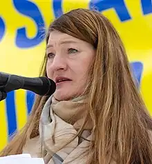 Susanna Gideonsson (LO), under en partipolitiskt och organisatoriskt oberoende manifestation den 29 mars 2023 vid FRIA UKRAINAS PLATS utanför Rysslands ambassad i Stockholm.