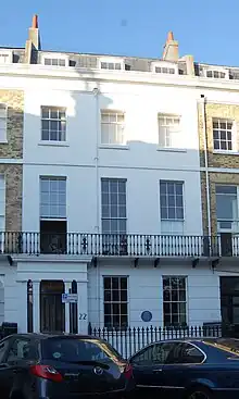 During the later years of the eighteenth century Brighton became a fashionable seaside resort and many new streets and squares were added, continuing during the Regency era with the new suburb of Kemp Town.[2] Work started on Sussex Square and adjacent Lewes Crescent in 1823 and the facades of the houses were finished in 1828.[3] The master builder Thomas Cubitt oversaw the construction.[4]
