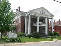 The house is a 2+12-story, brick Classical Revival style building on a sandstone foundation. It was originally built in the Greek Revival style. The front facade features a full 2+12-story, pedimented portico supported by Ionic order columns which was added during the 1909 remodeling. The exterior surface of polychrome Flemish bond brick was also added at this time.[2]