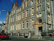 The school, built of Plymouth limestone, first opened in 1897 as the Regent Street Higher Grade School when pupils from Mount Street Higher Grade Board School moved into the building.[5] The School motto was "shine to serve" and it continued until a reorganisation in 1926 when boys from Keppel Place Central School exchanged Places with the Girls in Regent Street Higher Grade School. The boys' school in Regent Street became known as Sutton Secondary School for Boys and the girls' school Stoke Damerel High School for Girls. Eventually despite the actions of the LEA[6] the name was changed to Sutton High School for Boys.