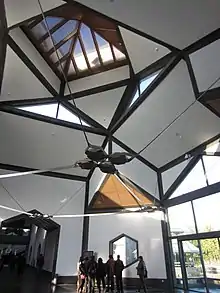 Pei used simple geometric shapes such as octagons, rhombuses, and triangles as the building blocks of the museum's design. The atrium and several halls take an octagonal shape, and some windows are in the shape of rhombuses. The roofs and ceilings are a patchwork of triangles, rectangles, and rhombuses, which differentiates the structure from the traditional Suzhou buildings surrounding the museum.[8][9]
