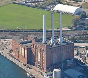 Svanemølle Power Station (Danish: Svanemølleværket) is a natural gas fueled combined heat and power station located at the south side of Svanemølle Bay in the Nordhavnen of Copenhagen, Denmark. Its primary task is to supply district heating to the district-heating network of Greater Copenhagen.