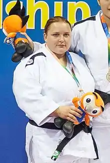 Svitlana Mykolayivna Iaromka (Ukrainian: Світлана Миколаївна Ярьомка, born 9 April 1989) is a Ukrainian judoka. She is the 2016 European silver medalist in the +78 kg division.[1] Iaromka repeated her success next year.