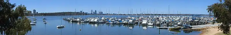 Matilda Bay on the Swan River, with Mount Eliza and the Perth skyline in the background