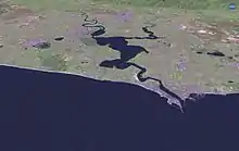 Between Perth and Guildford the river goes through several loops. Originally, areas including the Maylands Peninsula, Ascot and Burswood, through Claise Brook and north of the city to Herdsman Lake were swampy wetlands. Most of the wetlands have since been reclaimed for land development. Heirisson Island, upon which The Causeway passes over, was once a collection of small islets known as the Heirisson Islands.[4][5]