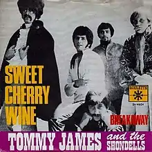 "Sweet Cherry Wine" is a song by Tommy James and the Shondells from their 1969 album, Cellophane Symphony. It hit number seven on the Billboard Hot 100[1] and rose to number six on the Canadian charts. This psychedelic song was released at the height of psychedelia, right after one previous 'mind expanding' song by Tommy James and the Shondells, "Crimson and Clover", and before "Crystal Blue Persuasion". It begins with the use of an organ, adds brass instruments, and ends with a solo flute that fades out at the end. Adding to the feel of this form of music, this and other songs on the album included the then-new Moog synthesizer.