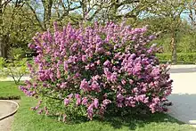 Syringa × chinensis, the Chinese lilac or Rouen lilac, is a hybrid species of flowering plant in the family Oleaceae.[1][2] It was supposedly first noticed growing in Rouen, France in 1777.[2] In spite of its specific and common names, it most probably originated in western Asia.[3] It is the result of a cross between Syringa vulgaris (common lilac) and Syringa persica (Persian lilac).[3] A shrub or shrubby tree reaching 12 ft (4 m), it is hardy in USDA zones 3 to 7, and is recommended for borders, loose hedges, and foundations.[2]