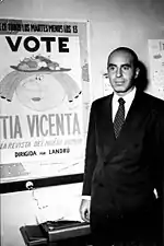 Caricaturist and commentator Juan Carlos Colombres (mostly known for its nickname "Landrú") established Tía Vicenta with fellow illustrator Oski in 1957.[6] The current events weekly quickly earned renown for its satirical content, particularly regarding Argentine politics, and its circulation, which initially averaged 50,000, doubled shortly afterward.[7]