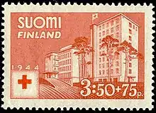 In 1944 the Finnish post office and the Finnish Red Cross published a series of stamps. One of them shows the Finnish Red Cross hospital, acting as Military Hospital 54 at the time. The hospital is now known as the Töölö Hospital.