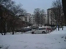 The Töölö Hospital is a hospital in Taka-Töölö, Helsinki, Finland, belonging to the Helsinki University Central Hospital. It has special departments for plastic surgery, orthopedic surgery and traumatology, hand surgery and neurosurgery.[1] The hospital has a 24-hour policlinic receiving trauma patients from the Helsinki capital area and occasionally from the entire region of Southern Finland. Patients usually arrive at the policlinic on a medical note. The policlinic treats about 18 thousand patients per year.[2] The hospital also hosts the cleft lip and cleft palate centre HUSUKE, containing research and care for cleft lips and cleft palates as well as the department for care of mouth and jaw diseases. The Töölö Hospital also has its own X-ray facility and laboratory.
