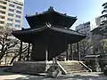 This is a hexagonal (rokkaku) building with revolving bookshelves for sutras and sculptures. In 1842, the local merchant Bungoya Eizō raised money from merchants throughout western Japan and invited a carpenter named Itō Hirazaemon to build this sanctum. The building is open on the 28th of every month[1]