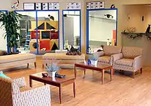 Tabby's Place houses around 130 cats in a single building, and in 2010 had plans the addition of two more buildings to increase care for a total of 500 residents. The physical design of the Tabby's Place building and attention to detail has received considerable media coverage. The New Jersey Monthly described the sanctuary as "palatial."[17] The sanctuary is cage free[18] and constructed of materials that allow for easy and frequent cleaning.[18] The building includes specialized suites for cats with specific medical needs,[18] outdoor enclosures with access to sunlight, communal living areas with areas to exercise, and a medical facility in house.[18]