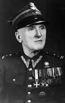 Then, in the years 1927–1931, he served in the maneuvering battalion of the Infantry Training Center in Rembertów, 17th Infantry Regiment in Rzeszów, from 1931 to November 12, 1935.[1] On February 22, 1934, he was appointed to the rank of captain with the seniority of January 1, 1934 and the 71st position in the corps of infantry officers.[2] Later, he served in the KOP "Czortków" battalion as the commander of the 1st machine gun company[3][4] until August 1939.[1] He completed the battalion commanders' course on August 25, 1939, and was assigned to the 1st Mountain Brigade, whose task was to cover the Kraków Army eastern wing.