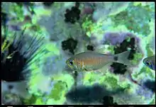 Taeniamia fucata, commonly known as the orange-lined- or painted cardinalfish, is a marine fish native to reefs from northern Australia and New Guinea,[2] across the Indian Ocean to the east coast of Africa, and Pacific Ocean to Marshall Islands, Samoa, Tonga, and the Ryukyu Islands. It was known as Archamia fucata until 2013.[3] FishBase treats T. sansibaricus as synonymous with T. fucata.[1] but T. sansibaricus is recognised as valid by the Catalog of Fishes:[4]