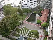 During Japanese rule, when the fortunes of the Wu family began to decline, the garden was confiscated by Tainan Prefecture (臺南廳)[2]. In 1911, the Former Tainan Assembly Hall was constructed along the Garden's southern edge, as well as the then-famous Four Seasons Inn (四春園旅館) on its southeastern side, the Tainan Library (臺南圖書館) (in 1920) on its northwestern corner [3], and Tainan Municipal Swimming Pool (臺南市水浴場) (in 1922) on its northern edge[4]. In 1974, the Four Seasons Inn, Tainan Library, and Tainan Municipal Bathhouse were sold to Far East Department Store, and now is the location of its Park Branch store[4].
