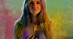 A still of the music video that shows Kesha "unzipping" herself, transforming into stardust. The scene is intended to be symbolic with the transformation representing letting go of one's inhibitions.
