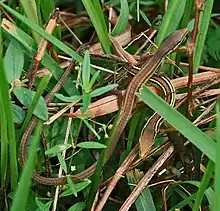 Takydromus sexlineatus, the Asian grass lizard, six-striped long-tailed grass lizard, or long-tailed grass lizard, is an arboreal, diurnal species of lizard. The tail length is usually over three times the body (snout to vent) length in this species.[2]