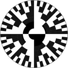 A disk that was used to demonstrate the Talbot-Plateau law. If the disk is rotated fast enough, the black and white bands appear gray.[1]