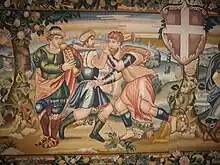 The seven colorful tapestries that decorate the main building in Tallinn were ordered from the Netherlands by the alderman Arent Pakebusch, who had prepaid 150 marka. After finishing the tapestries in 1548, he paid 341.5 marka and 4 killings. Two eight-metre-long tapestries depict Israel's king and a country gold-coverer Solomon's stories about his life from the Old Testament.