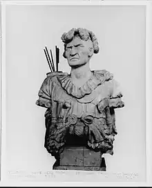 The USS Delaware was burned in 1861 at the Gosport Navy Yard to prevent Confederate capture at the start of the Civil War.[3] In 1866, the salvaged figurehead was transferred to the United States Naval Academy and placed on a pedestal facing Bancroft Hall, the Naval Academy's dormitory that is said to be the largest dormitory in the United States,[4] and is flanked by Stribling Walk on both sides.