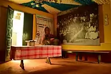 ![]() The interior of Casa das Minas, with a photo of the last complete initiation ceremony (boat of tobossis), in 1914. The floor is made of clay | |