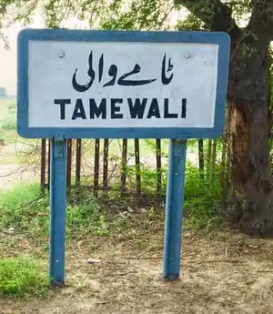 Tamewali Railway Station (Urdu: ٹامے والی ریلوے اسٹیشن, Punjabi: ٹامے والی ریلوے اسٹیشن) is located in Pakistan.