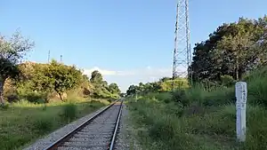Tandoi railway station (Urdu: ٹنڈوئی ریلوے اسٹیشن) is located in Pakistan on the Karachi-Peshawar main line. It is an abandoned station, the building is no longer there and the only sign left is the old communication tower.