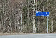Similarly, where a backroad from Kadrina comes to a T at route 24, a sign gives drivers directions to "Tapa" (to the left) or to "Loobu" (to the right). In Estonian, loobuma means to abandon, to desist, to waive. Therefore, drivers have the options to "Kill" or "Quit".