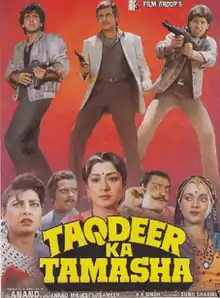 Taqdeer Ka Tamasha (transl. Farce of Fate) is a 1988 Hindi-language action film, produced and directed by Anand Gaekwad under the Film Group banner. It stars Jeetendra, Govinda, Aditya Pancholi, Moushumi Chatterjee, Kimi Katkar, Mandakini in the pivotal roles and music composed by Anand–Milind.[1]