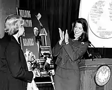![]() Holland (left) visits Maurvene Williams, program officer in the Library of Congress, in 1997 | |