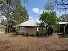 In 1934 a new teacher's residence was constructed in the southeast corner of Tarampa State School and the old residence (the original provisional school building) was sold and removed the following year.[30] The new residence was constructed to a standard Department of Public Works design (Type D/R3) containing three bedrooms, a living room, kitchen with stove alcove, bathroom and a wrap-around verandah. The new residence was described as "a well-built, modern house, replete with all conveniences, and not over-decorated. The work is a credit to the builders and a big improvement to the surroundings".[31][1]
