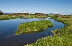 Easterly view across Tarawera River in its flood plain towards Putauaki.