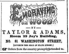 Taylor & Adams was an engraving firm in Boston, Massachusetts, in the mid-19th century, established by James L. Taylor and Thomas W. Adams.[1][2][3] The business operated from an office in Joy's Building on Washington Street in the 1850s and 1860s. Clients included the Boston Herald[4] and publishers Lee & Shepard.[5]