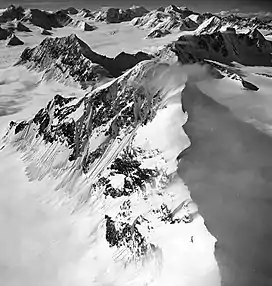 Tazlina Tower is an 8,350-foot (2,545 m) elevation glaciated summit located 26 mi (42 km) northwest of Valdez in the Chugach Mountains of the U.S. state of Alaska. This remote mountain is situated 5.5 mi (9 km) southeast of Mount Powder Top, and 5.7 mi (9 km) northeast of Pilot Peak, near the head of Tazlina Glacier, on land managed by Chugach National Forest. Tazlina Tower was named in association with the glacier, in 1959, by Lawrence E. Nielsen of the Chugach Mountains Expedition, which was sponsored by the Arctic Institute of North America.[2] In turn, the glacier, Tazlina Lake, and Tazlina River are traced to the Ahtna language, "tezlina", meaning "swift river."[3][4] The mountain's name was officially adopted in 1965 by the U.S. Board on Geographic Names.[2]