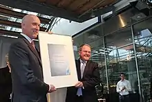 Appointment to Technische Hochschule Ingolstadt (2012): THI President Walter Schober (left) with the Bavarian Science Minister Wolfgang Heubisch.