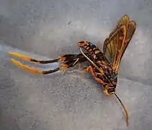 - ↑ Kyushu University (2016-03-08). "Okinawade hachini gitaishita shinshuno gawo hakken! [沖縄でハチに擬態した新種のガを発見!]" [Discovered a new species of moth mimicking bee in Okinawa!] (PDF) (in Japanese). Archived from the original (PDF) on 2016-03-27. Retrieved 2018-03-28.