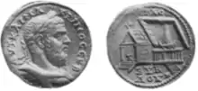 The temple now sits east of the Roman theater. The theater, built around AD 218, was reconstructed and moved to allow excavation of the temple site.[3][14]