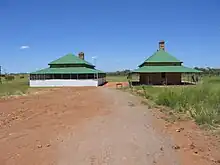 The Tennant Creek Telegraph Station was built in 1872. It was first a temporary bush timber building but by 1875 had been rebuilt with locally quarried stone.[2] It operated as a repeater station as part of the Overland Telegraph Line which connected Darwin to Adelaide. It also operated as a government rations depot. By the 1920s it featured a blacksmith shop, cart shed, ration store, meat house, smokehouse and cellar. Warumungu people were employed at the station as cattlemen and slaughter-men. But the 1890s more than 100 Aboriginal people were living at the station. It was declared an Aboriginal Reserve.[3]