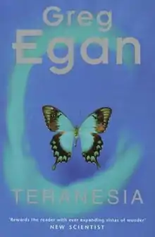 Teranesia is a 1999 science fiction novel by Greg Egan.[1] The novel follows protagonist Prabir Suresh, who lives on an island in the South Moluccas with his biologist parents, who are investigating the unique evolutionary traits of butterflies on the island. As civil war erupts in Indonesia, Prabir and his baby sister Madhusree must escape the islands. When they grow up, Madhusree becomes a biology student, motivated to carry on her parents' legacy in uncovering the evolutionary phenomenon. Prabir reluctantly follows her, as he must navigate and confront the truth that shaped his past.[2][3]
