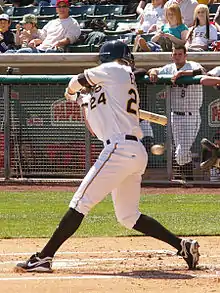 Evans batting for the Salt Lake Bees, Triple-A affiliates of the Los Angeles Angels of Anaheim, on April 12, 2009