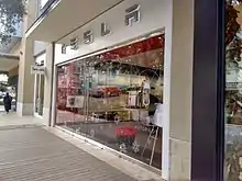 As of September 2020, there are stores and galleries[19][20]—usually located in shopping malls—in 29 US states and Washington DC.[21] Customers can buy vehicles from stores,[22][23][24] as well as from the Tesla website.[25] The stores serve as showrooms that allow people to learn about the company and its vehicles.[2] Some galleries are located in states with restrictive dealership protection laws which prevent discussing price, financing, and test drives, as well as other restrictions. Tesla has set up mobile-shipping-container "stores"[9] and 6 Airstream travel trailers each pulled by a Model X, reaching areas not served by brick-and-mortar shops.[26][27]