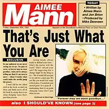 7. 1 2 "That's Just What You Are - Aimee Mann | Song Info | AllMusic". AllMusic. Retrieved March 20, 2021.