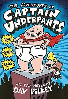 The Adventures of Captain Underpants is an American children's novel by Dav Pilkey, and the inaugural novel of the Captain Underpants series. It was published in September 1997, becoming a hit with children around the world. In the novel, George Beard and Harold Hutchins turn their principal, Mr. Krupp, into the "greatest superhero of all time", The Amazing Captain Underpants. It has spawned many sequels and subseries such as Super Diaper Baby, Dog Man & The Adventures of Ook and Gluk: Kung-Fu Cavemen from the Future.