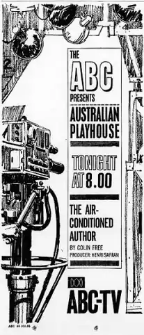 "The Air Conditioned Author" is the third television play episode of the first season of the Australian anthology television series Australian Playhouse.[1][2] "The Air Conditioned Author" was written by Colin Free and directed by Henri Safran and originally aired on ABC on 2 May 1966.[3]