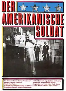 The American Soldier (German: Der amerikanische Soldat) is a 1970 West German film written and directed by Rainer Werner Fassbinder. The film stars Karl Scheydt as Ricky, a German-American Vietnam veteran, who takes a job as a hired assassin on behalf of three renegade policemen to do away with a number of undesirables in Munich.