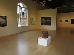 The Art Gym was founded in 1980 by Marylhurst University art faculty members Kay Slusarenko, Paul Sutinen, and Terri Hopkins, who together raised $1500 from a banquet and cookie sale, to open the 2,700 square foot gallery. Hopkins, in particular, lead the charge to curate the exhibits, and to raise the necessary funds for them. The university funds the space and basic infrastructure.[1] Since then, the gallery has occupied what was previously the campus gymnasium and theater on the third floor of the university's B.P. John Administrative Building. The Art Gym is dedicated to producing exhibitions and publications featuring artists of the Pacific Northwest.[2]