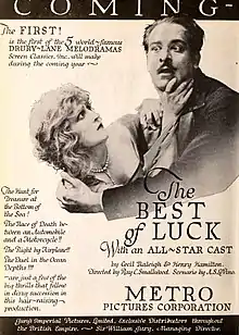 The Best of Luck is a 1920 American silent drama film directed by Ray C. Smallwood and starring Kathryn Adams, Jack Holt and Lila Leslie. It was adapted from a British play which had been a hit in the West End.[1] A young American woman moves to Scotland and purchases an ancestral castle. She is pursued by two suitors, one a British nobleman and the other an underhand Spaniard.